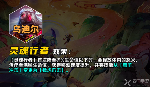 首次生命值降到某一阈值时,会释放体内的怒火,治疗到满血,并且移动速度提升,技能从【蛮羊冲击】变更为【猛虎爪】