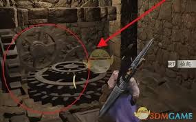2. 开启下方红点机关:接着,按照提示图指引,来到下方第三个红点标注的机关处,并将其打开。