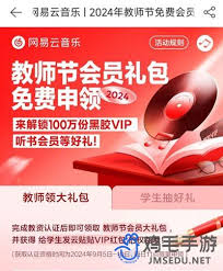在这个充满感恩的季节里,网易云音乐为了庆祝即将到来的教师节,特别推出了一个令人振奋的活动——“网易云音乐教师节活动一年免会员2024”。这个活动旨在感谢所有辛勤工作的老师们,并为他们提供了一个放松心情、享受音乐的机会。接下来,让我们一起详细了解这个活动的具体内容和参与方式。