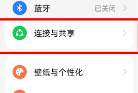 * 在设置页面中找到“连接与共享”或“更多连接方式”。