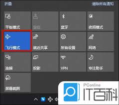 - 在快速设置面板中,找到飞行模式图标(通常是一个飞机形状)。如果飞行模式已开启,该图标会亮起或显示为高亮状态。