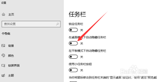 2. 启用自动隐藏功能:在任务栏设置窗口中,找到“在桌面模式下自动隐藏任务栏”或类似的选项(有时也包括平板模式下的设置)。勾选该选项后,任务栏将在不使用时自动隐藏。