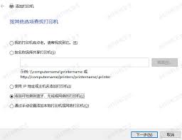 如果没有在列表中找到打印机,您可以点击“我需要的打印机不在列表中”,然后选择“通过tcp/ip地址或主机名添加打印机”,输入打印机的ip地址(可以在打印机的网络设置菜单中找到),然后继续按照提示操作。