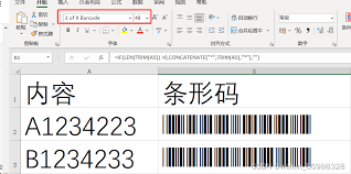 - 批量处理:利用excel的批量处理能力,你可以一次性为大量商品生成条形码,极大提高工作效率。