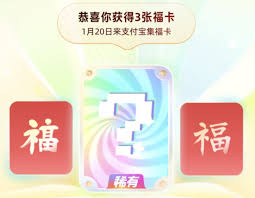 值得一提的是,今年的集五福活动还设置了早鸟抢稀有福卡的环节。在1月15日至1月19日期间,用户上支付宝搜“集福啦”就有机会获得稀有卡,为后续的集卡活动增添了一份期待和惊喜。