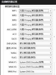 在这里,你可以看到多种音频解码器选项。不同的解码器适用于不同的音频格式和播放需求。比如,如果你经常播放mp3格式的音频,某些解码器可能在音质还原上表现更佳。