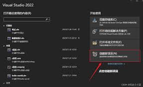 打开visual studio后,在起始页中可以看到“创建新项目”的选项。点击该选项,即可进入项目创建界面。