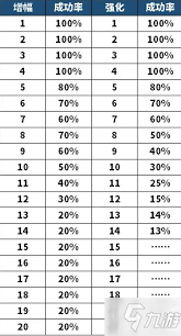 增幅几率表详细列出了不同装备部位、不同增幅等级所对应的成功几率。一般来说,随着增幅等级的提升,成功几率会逐渐降低。例如,从增幅1到增幅2,成功几率相对较高,玩家可能比较容易达成。但当想要冲击更高的增幅等级,如增幅10甚至更高时,难度就会大幅增加。