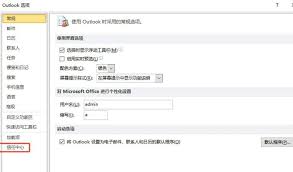 2. 选择“选项”,在弹出的“outlook选项”窗口中,点击“信任中心”。