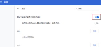 5. 在“允许的通知”列表中,可以看到已允许发送通知的网站。如果要允许特定网站发送通知,点击该网站旁边的开关,将其设置为打开状态。