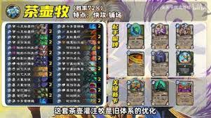 这套卡组的核心思路在于利用冰霜死亡骑士的强大控场与爆发能力,结合龟途茶壶等卡牌的效果,在前期建立场面优势,中期不断压制对手,后期凭借强力卡牌终结比赛。
