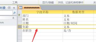 进入设计视图后,找到需要调换位置的两个字段。比如,字段a和字段b。
