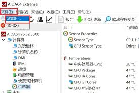 首先,打开aida64软件。进入主界面后,点击上方菜单栏中的“设置”选项。