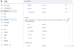 进入“搜索引擎”设置后,您会看到当前默认的搜索引擎以及相关设置。