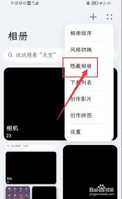 首先,打开手机中的“图库”应用。进入图库后,长按屏幕空白处或者双指捏合屏幕,此时会弹出“隐藏相册”的设置入口。点击进入“隐藏相册”界面。