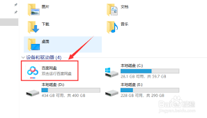 勾选该设置项后,关闭设置窗口。此时,打开“此电脑”或“我的电脑”,就能看到百度网盘的图标已显示在其中。