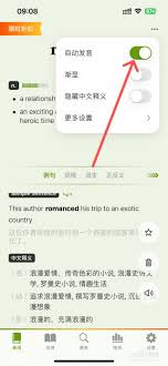 进入发音设置页面后,你会看到“自动发音”的开关选项。它通常呈现为一个滑块或开关按钮,颜色可能会根据应用的主题有所不同。此时,滑块或开关按钮应该处于开启状态,即显示为绿色或其他表示开启的颜色。